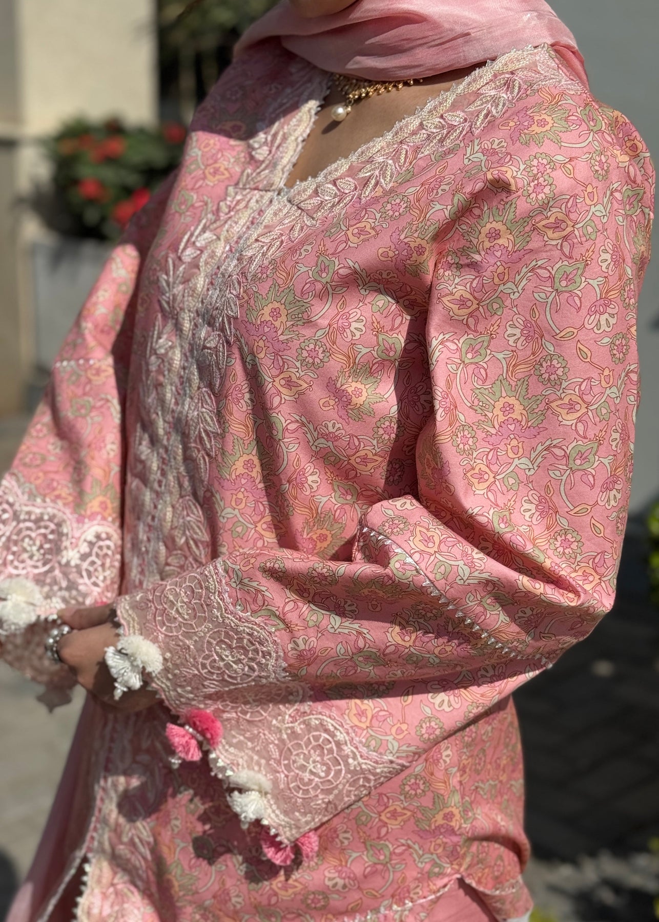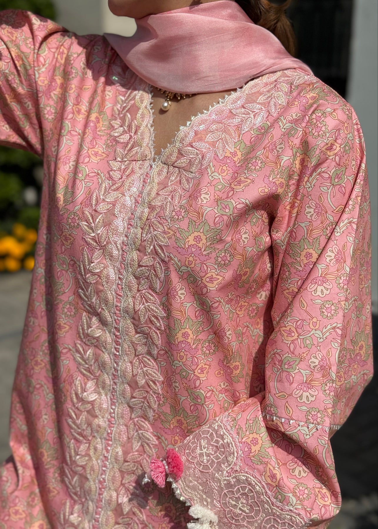 - Organza Sequence Embroidered Sleeve Border