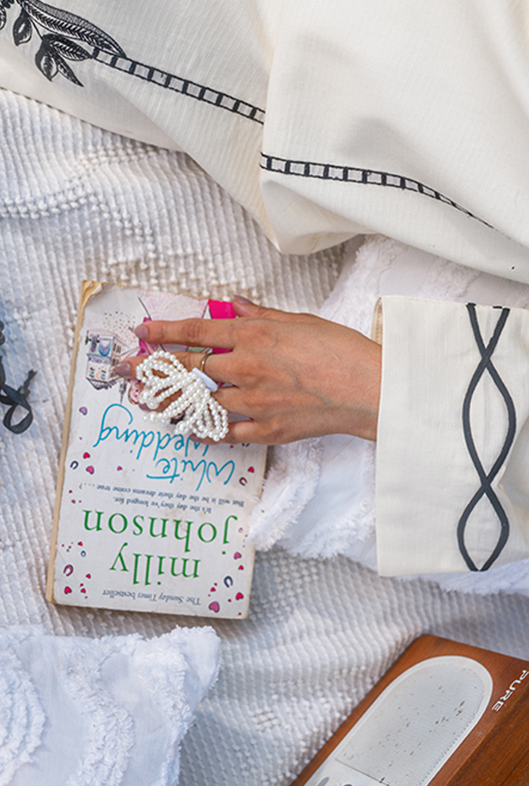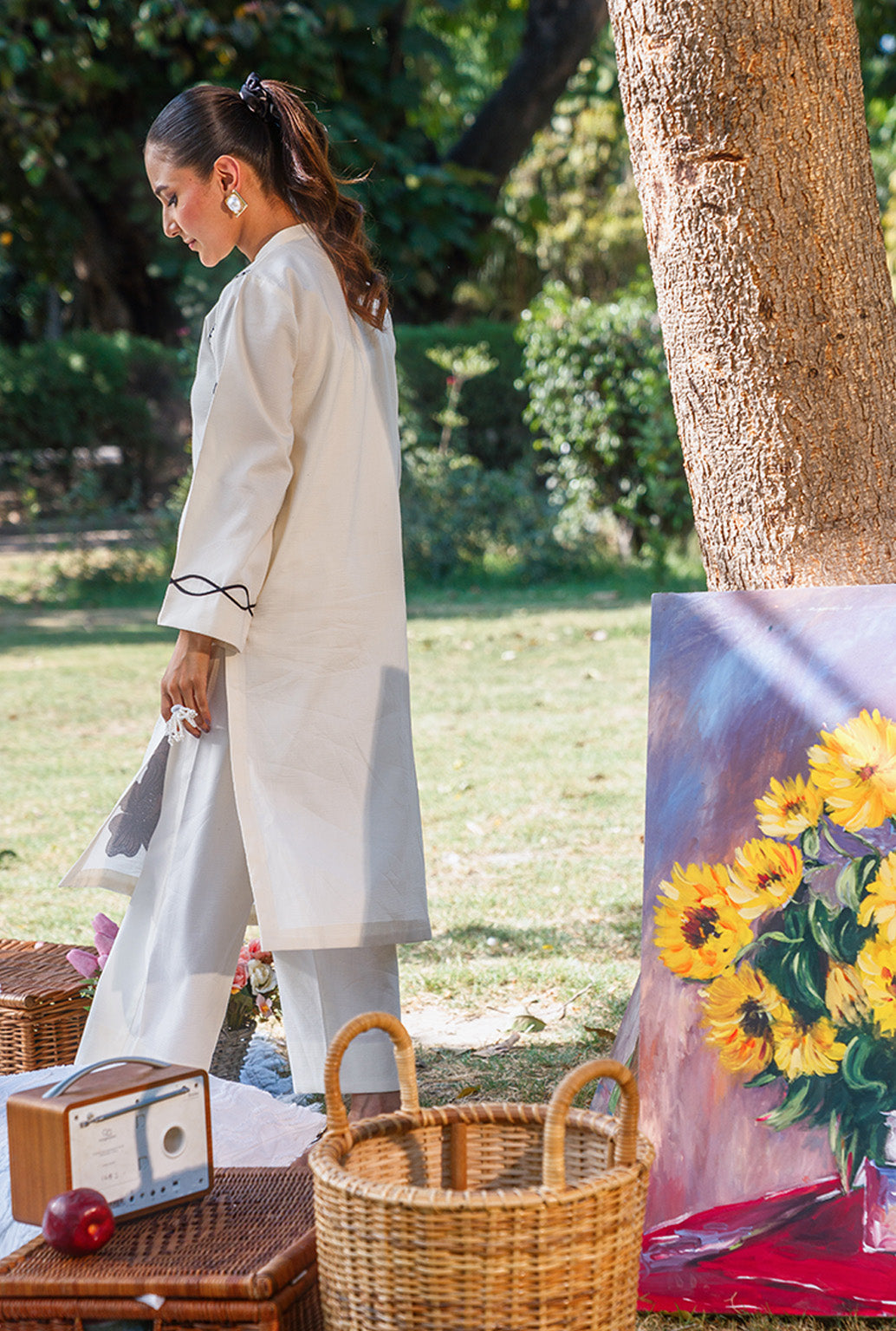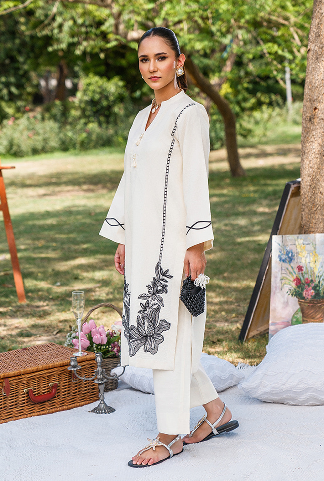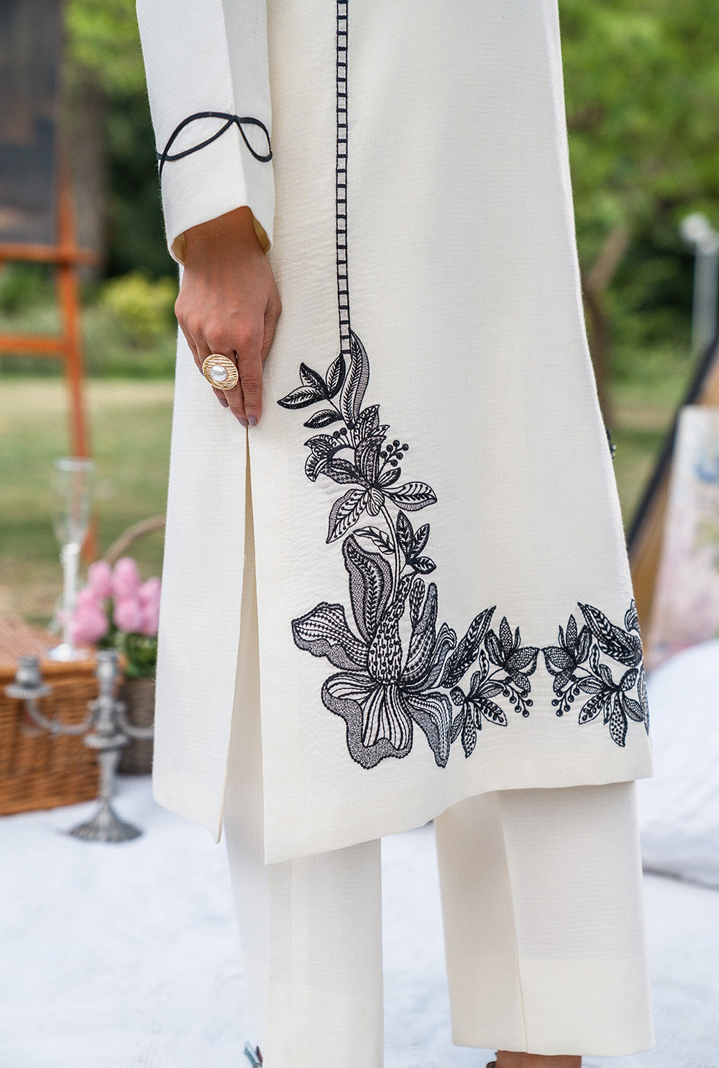 In a soothing Vanilla Ice shade, “Lisa” features front embroidery, delicate sleeve detailing, and a straight-fit silhouette for effortless elegance.
